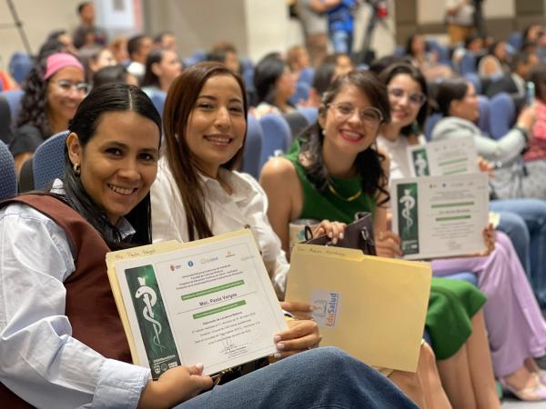 “Hoy estoy feliz por recibir este Diplomado en Lactancia Materna, este es el segundo diplomado con el Programa EduSalud, ha sido una bonita experiencia, en donde solo éramos dos varones y la mayoría eran mujeres, esto es importante porque los hombres deberíamos informarnos más sobre estos temas, no solo los médicos, sino el público en general. Esto me ayudará para brindar la ayuda que necesitan los pacientes y me siento muy agradecido con el programa”, comentó Johan Josué Maldonado, uno de los participantes.