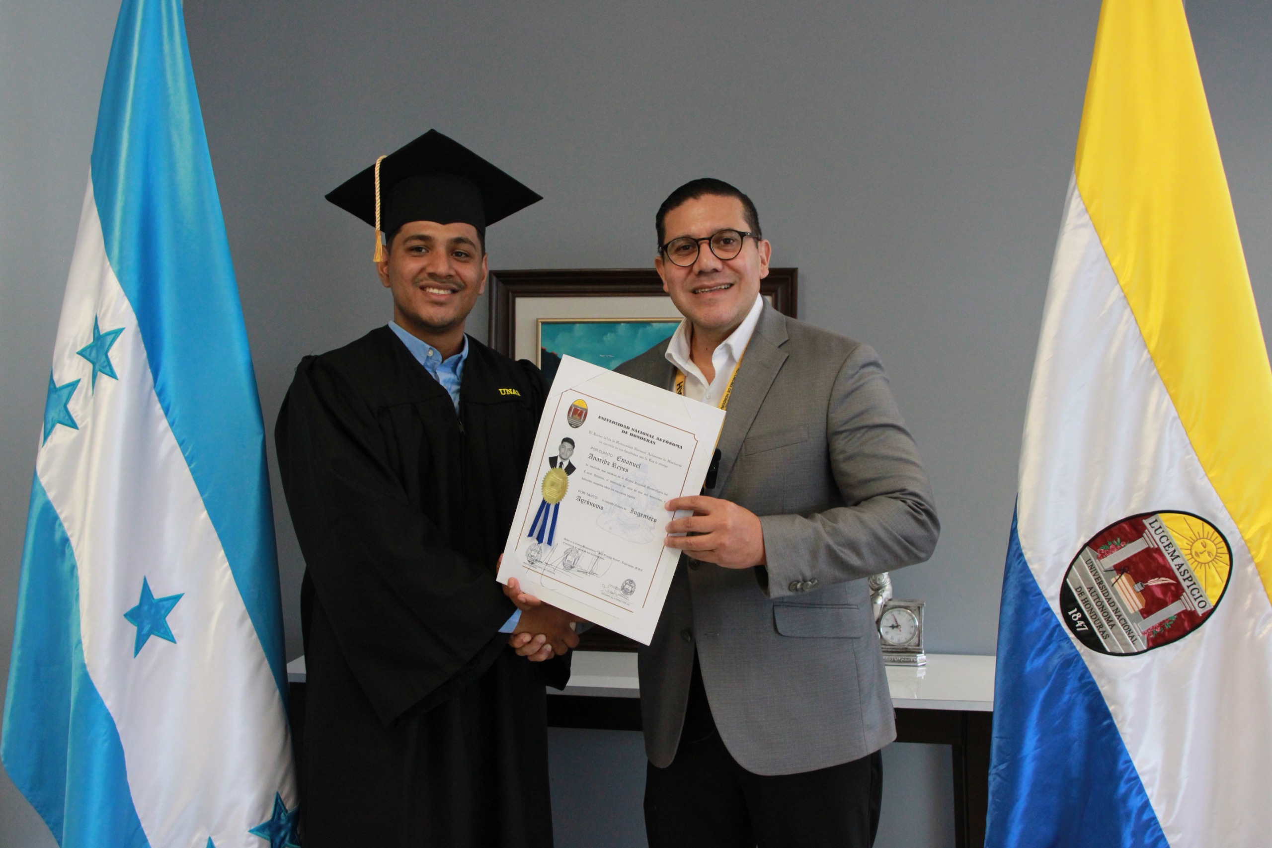 Aunque no pudo estar presente en la ceremonia pública celebrada por la Universidad Nacional Autónoma de Honduras (UNAH) Campus Atlántida, el pasado 26 de septiembre, el nuevo ingeniero agrónomo Emanuel Anariba Reyes expresó con orgullo y emoción su agradecimiento tras recibir por ventanilla su título profesional, entregado por el secretario general de la universidad, José Alexander Ávila.
