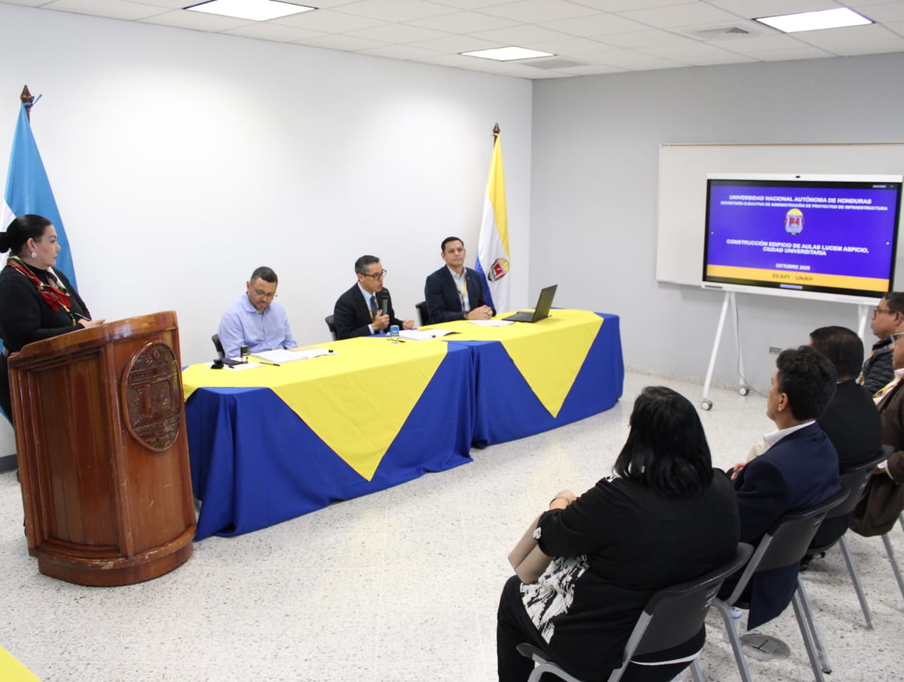 Autoridades de la Universidad Nacional Autónoma de Honduras (UNAH) y de la Constructora Sato firmaron el contrato para la construcción del nuevo y moderno edificio de aulas Lucem Aspicio, el cual estará ubicado en el centro de Ciudad Universitaria, junto al edificio D1.