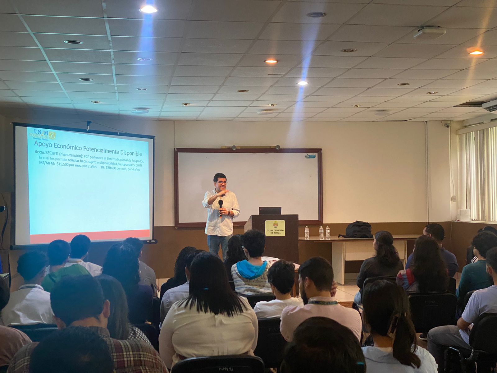 El conversatorio fue impartido por el doctor Alberto Guijosa, de la UNAM, quien informó sobre los diferentes procesos para optar a esta ayuda financiera, sobre todo en el área de física e investigación. La iniciativa se desarrolló en la sala Albert Einstein, en Ciudad Universitaria.