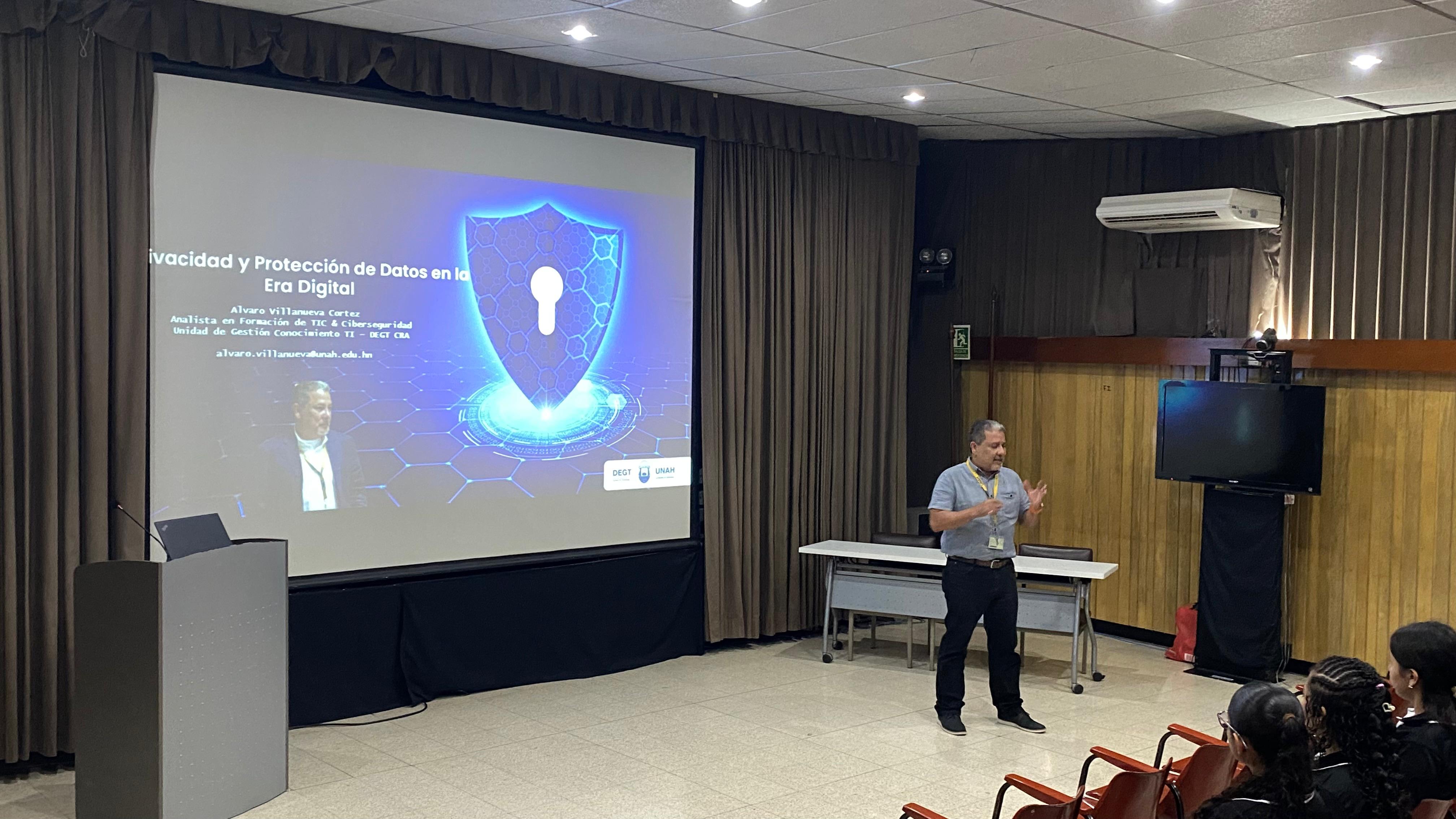 La Universidad Nacional Autónoma de Honduras (UNAH), a través de la Dirección Ejecutiva de Gestión de Tecnología y del CRA ofrecieron una capacitación sobre el Programa Permanente de Concientización y Educación en Ciberseguridad, a 60 estudiantes de ultimo año del Instituto Tecnológico de Administración de Empresas (Intae).