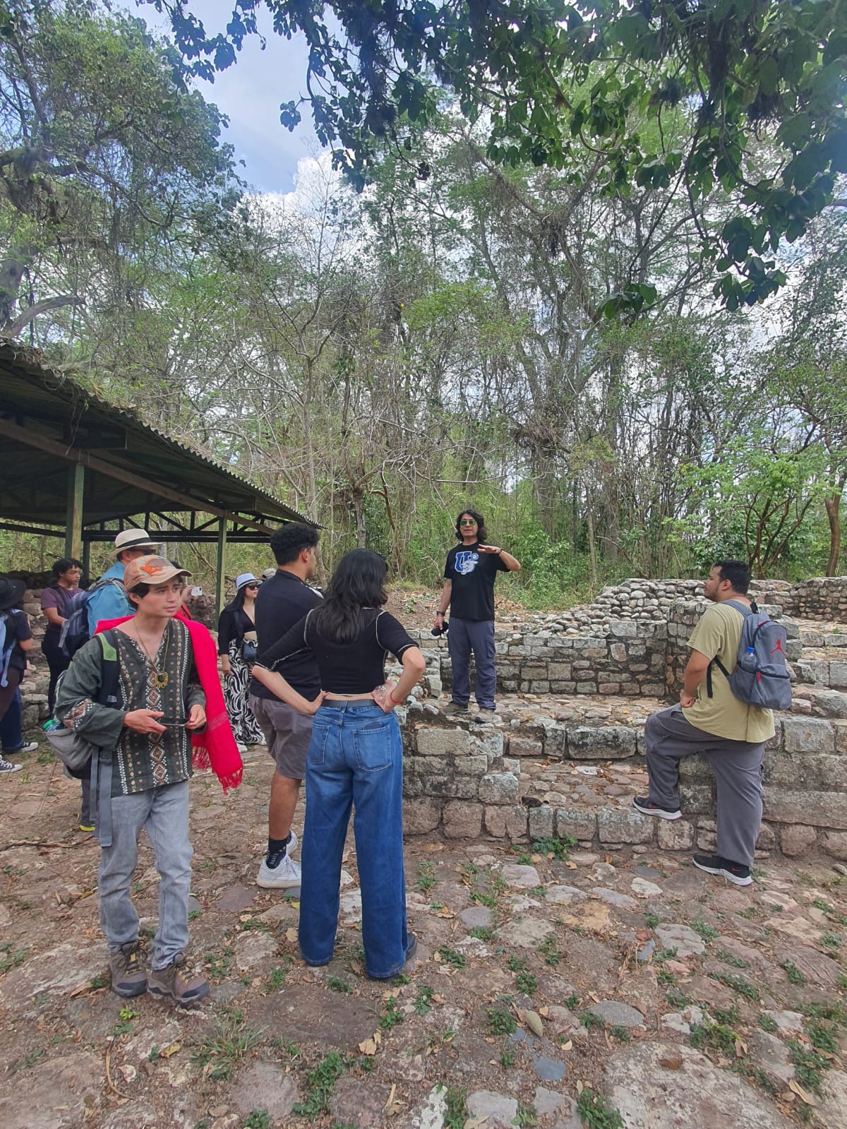 El grupo de futuros historiadores aplicó metodologías de investigación históricas aprendidas en las aulas universitarias, ahora en contacto directo con vestigios de la civilización maya que habitó esta región. Durante una de las jornadas, los estudiantes continuaron con labores de documentación en situ.