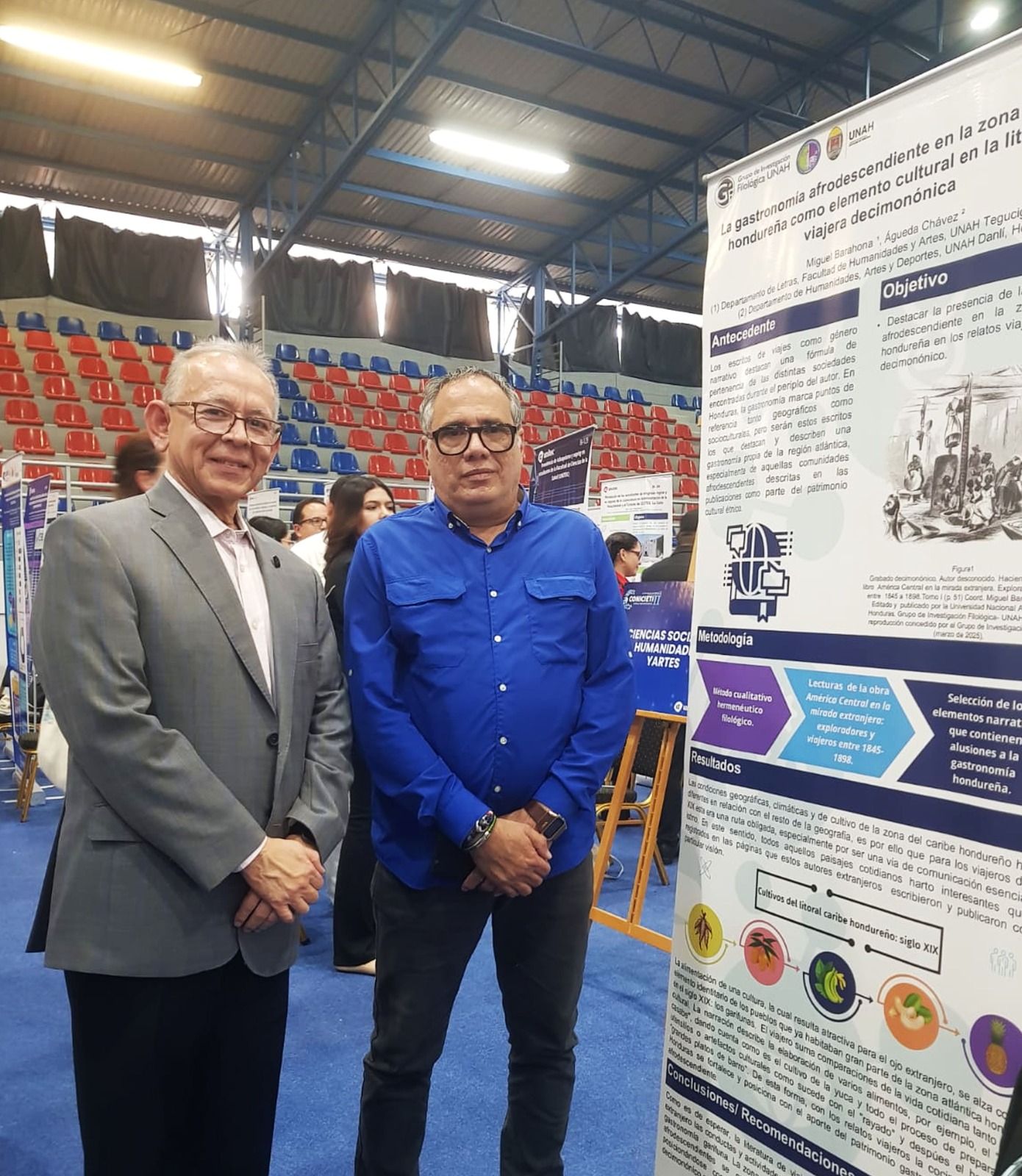 Esta iniciativa busca fortalecer el ecosistema de investigación nacional, propiciando un diálogo interuniversitario sobre ciencia con propósito e innovación académica. En este espacio académico, el Grupo de Investigación Filológica presentó, por medio de póster científico, avances de uno de sus más recientes proyectos enfocados en el rescate cultural y literario: la investigación sobre la gastronomía afrodescendiente en la zona atlántica hondureña desde la literatura viajera del siglo XIX.