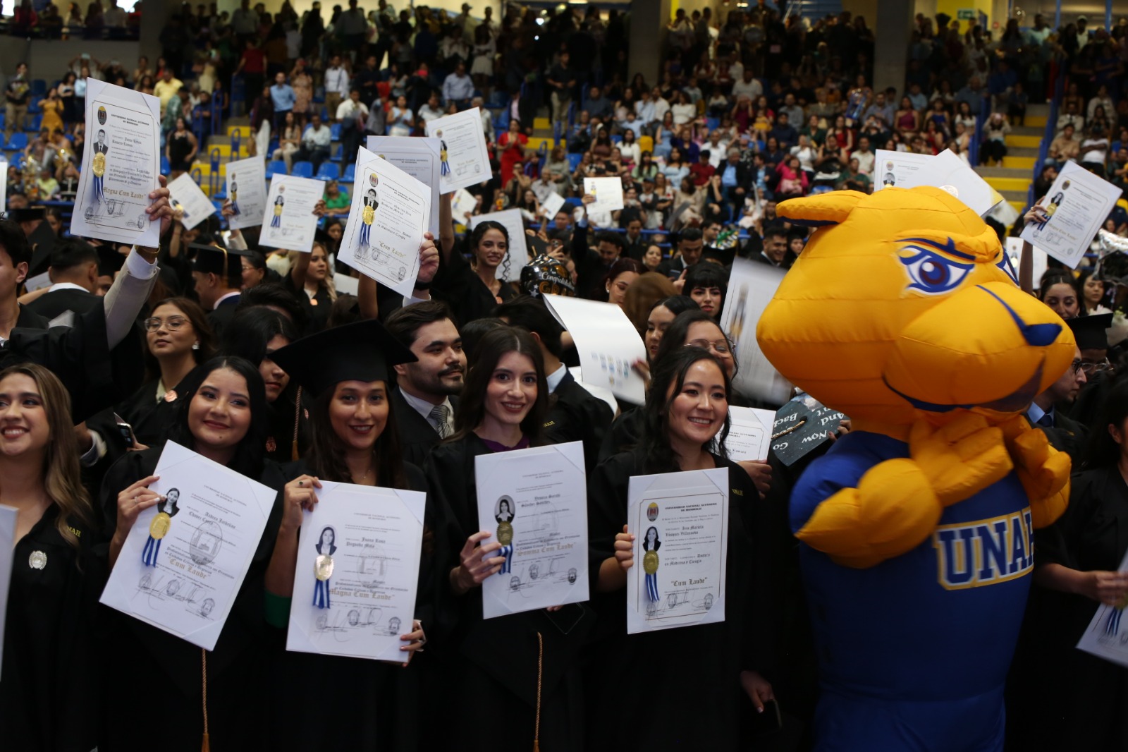 Recientemente la Universidad Nacional Autónoma de Honduras (UNAH) graduó a 1,283 nuevos profesionales de diferentes áreas del conocimiento y por primera vez en la historia de Honduras y Centroamérica, esa misma cantidad de egresados recibieron su certificado en formato físico y digital.