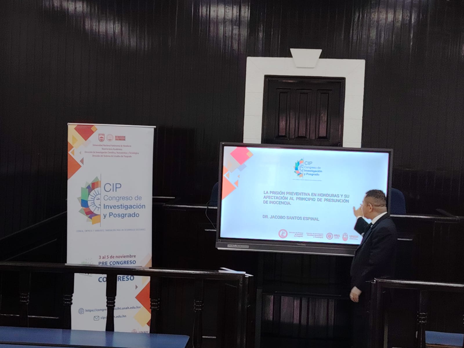 En el marco de la participación de la Facultad de Ciencias Jurídicas (FCJ) en el Precongreso de Investigación Científica y de Posgrados UNAH 2025, los investigadores Nery Mauricio Miranda Sanabria y Jacobo Santos Espinal advirtieron este martes 4 de noviembre sobre el uso excesivo de la prisión preventiva como medida cautelar en el país.