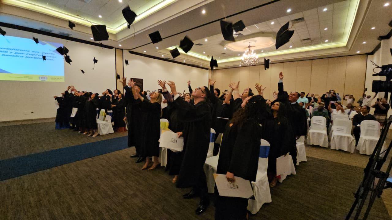 La ceremonia de graduación fue presidida por José López Padilla, vicerrector de Relaciones Internacionales, en calidad de rector por ley; el secretario general Alexander Ávila, y el director del ITST, Gustavo Rodríguez.