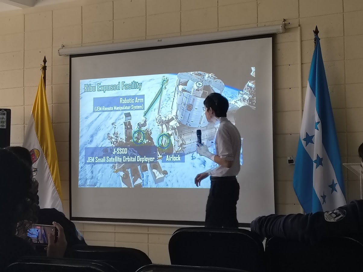 Durante su estancia en la institución, los expertos ofrecieron una conferencia dirigida a estudiantes y docentes de la Facultad de Ingeniería, donde explicaron el funcionamiento del módulo de experimentación Kibo, la estructura más grande de toda la ISS, con dimensiones comparables a las de un campo de fútbol; compuesto por cuatro componentes principales, entre ellos el módulo logístico y el sistema de manipulación remota, desde donde Japón ha lanzado hasta la fecha 105 satélites de 34 países, incluidos Guatemala, México y Costa Rica.