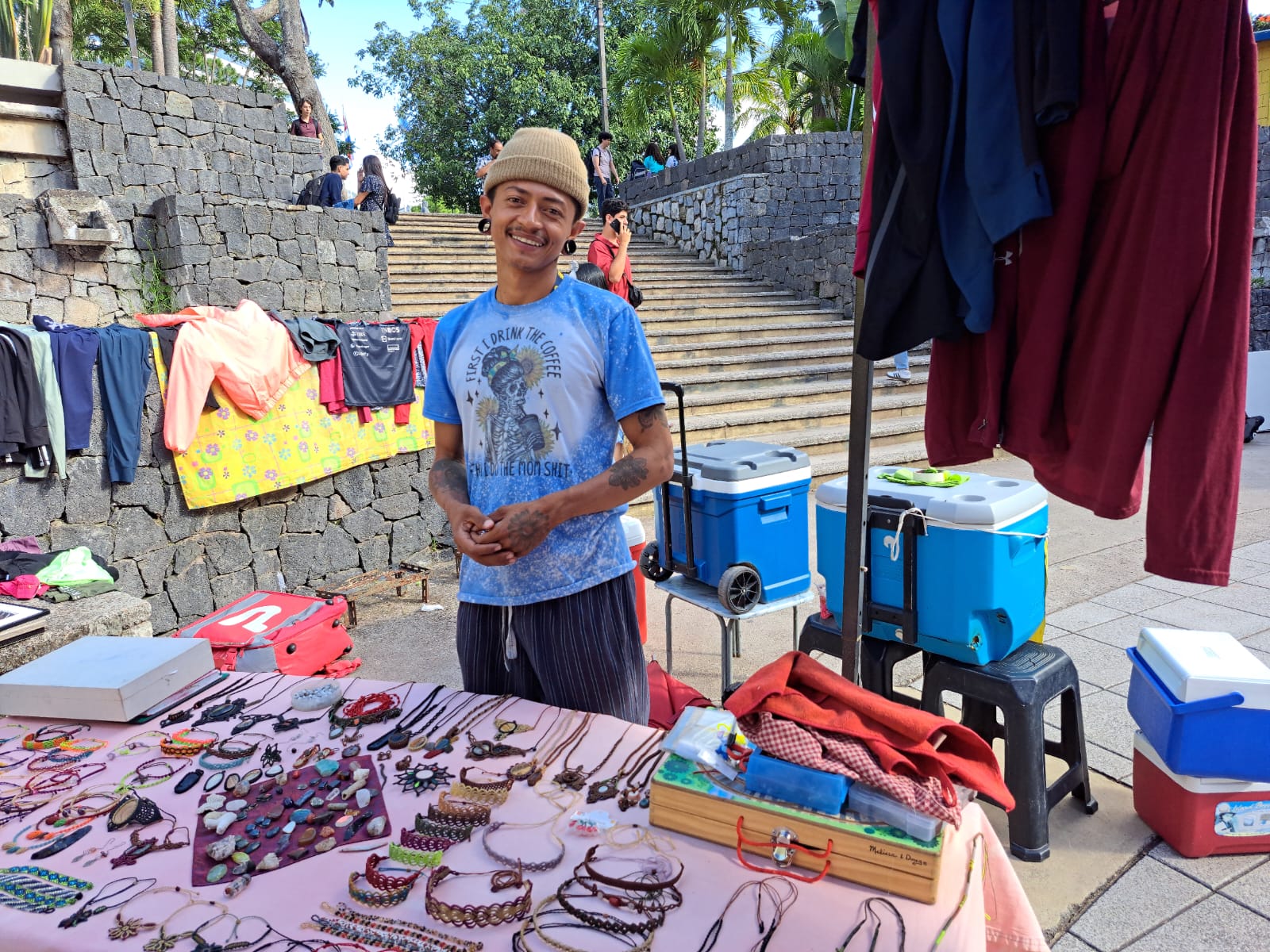 Asimismo, esta iniciativa fue aprovechada por estudiantes que están a punto de culminar sus estudios y necesitan recaudar fondos para sus proyectos finales. Así lo afirmó la estudiante de Psicología, Adjany Rosales, quien junto con sus compañeros instalaron una tienda de ropa de segunda mano con el fin de obtener financiamiento para su investigación en la clase de Elaboración y Ejecución de Proyectos. Con este esfuerzo no solo culminarán su plan de estudio, sino que se acercarán un poco más a la meta final.