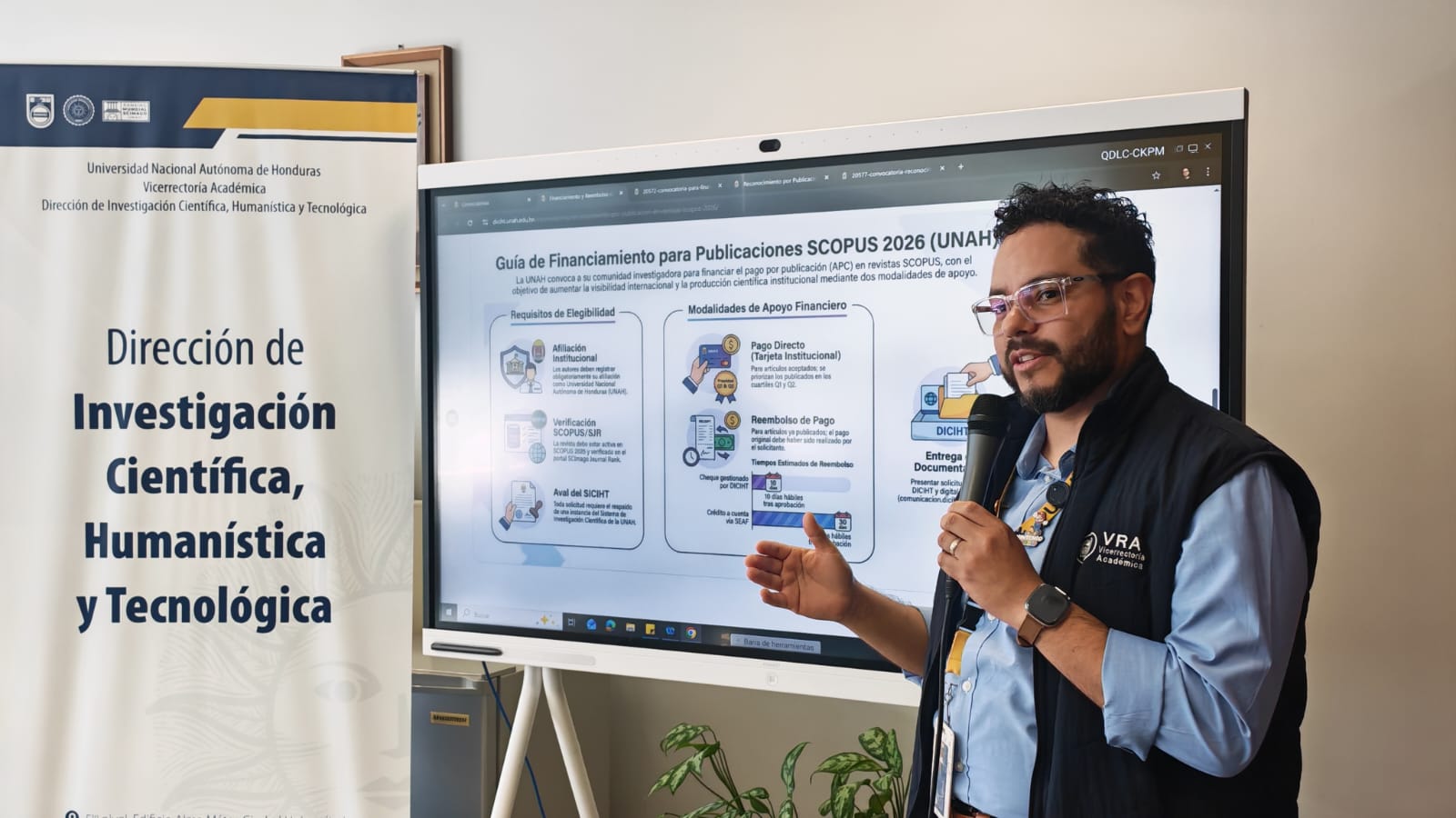 El subdirector recordó que en 2025 la UNAH alcanzó una cifra histórica de más de 300 artículos indexados en Scopus, superando ampliamente registros de años anteriores, cuando se celebraba haber superado los 100 trabajos anuales. Según indicó, este resultado convirtió el 2025 en el año de mayor impacto en la historia de la universidad en cuanto a publicaciones indexadas.