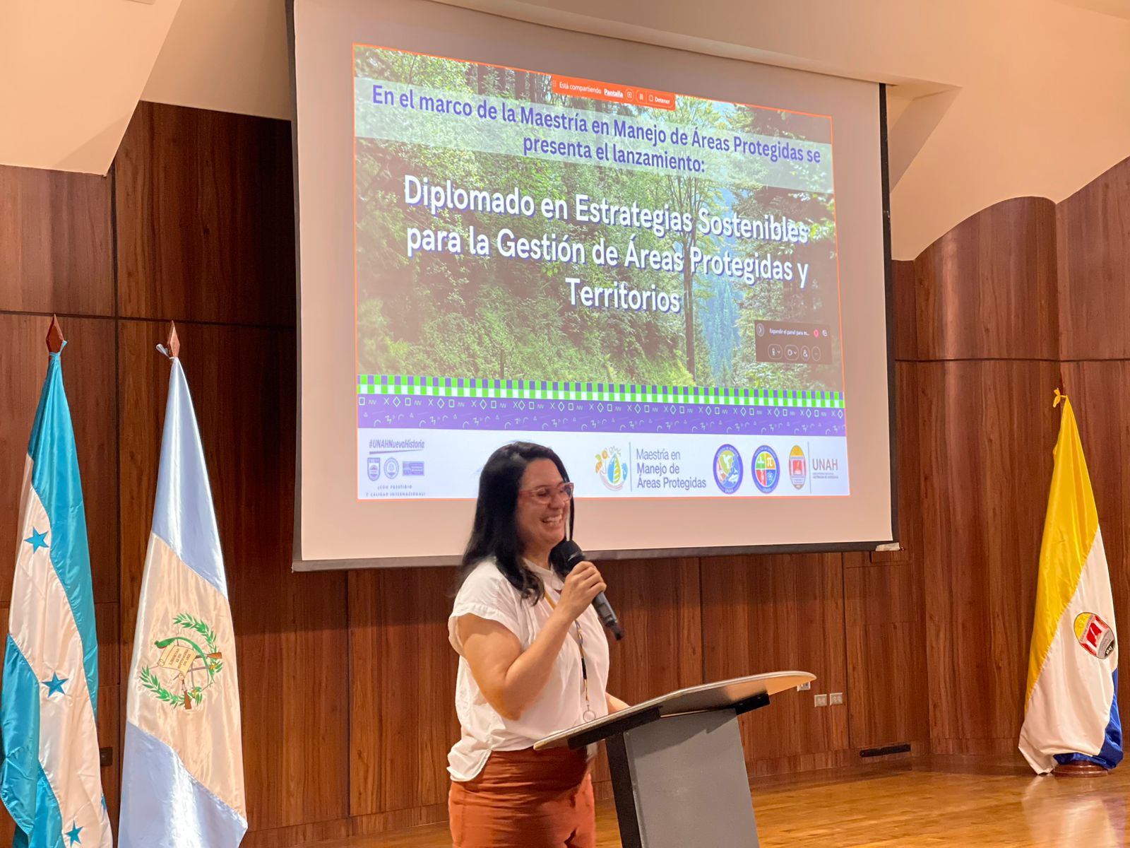 Durante el lanzamiento se realizó una conferencia internacional sobre la importancia de las áreas protegidas, la cual fue impartida por la máster Marlen García, quien forma parte de la Asociación Trees Water and People y es graduada del Curso Internacional sobre Manejo de Área Protegidas del Centro de Áreas Protegidas de la Universidad Estatal de Colorado.