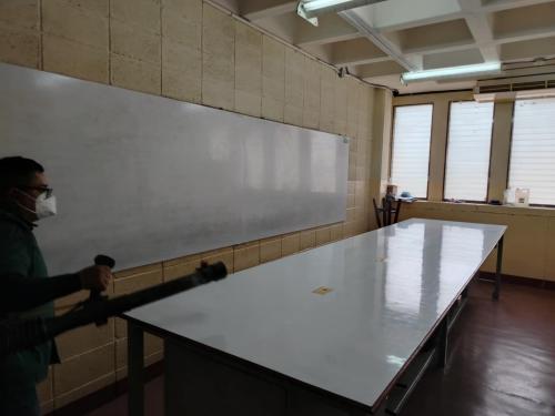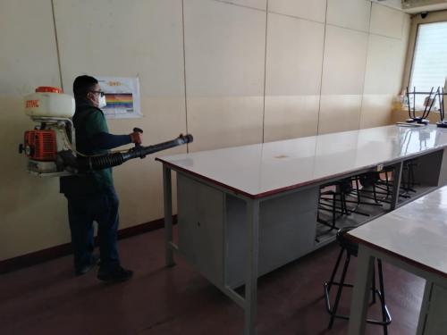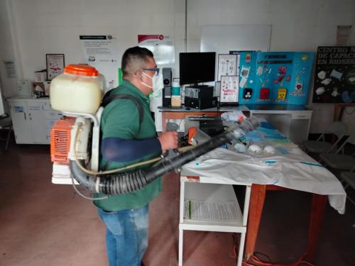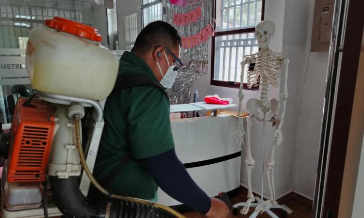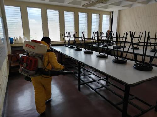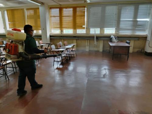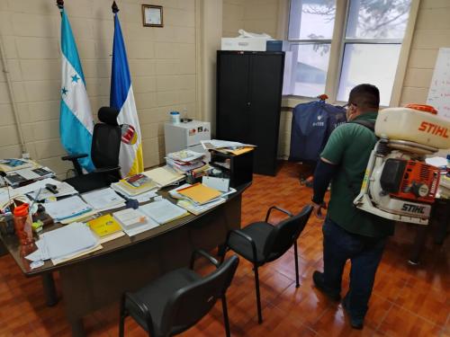 Por otra parte, el personal de Servicios Generales fumigó también cada una de tres plantas del edificio de la Biblioteca, los edificios Alma Máter, 1847, D1, F1. B1, B2, C1, C2, C3 , entre otras instalaciones académicas y administrativas, así como otros espacios de interés para la UNAH.