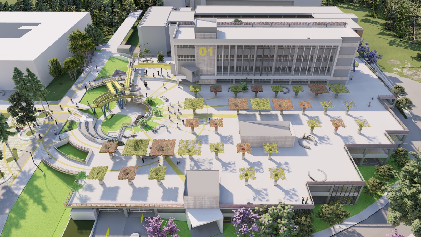 De igual manera, este proyecto arquitectónico tendrá accesibilidad universal total (rampas, gradas y elevadores), cableado subterráneo, sistema de recolección de aguas lluvias y un sistema de riego automatizado de árboles y jardinería.