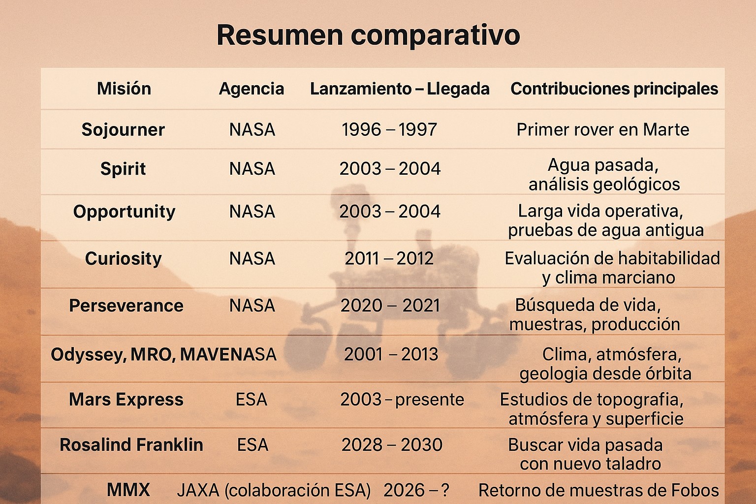 Avances tecnológicos para misiones humanas: el desarrollo de rovers ha impulsado innovaciones en inteligencia artificial, movilidad autónoma, sistemas de energía (solar y nuclear) y comunicaciones interplanetarias. Estas tecnologías son pasos indispensables para que, en el futuro, los astronautas puedan sobrevivir y trabajar en Marte.