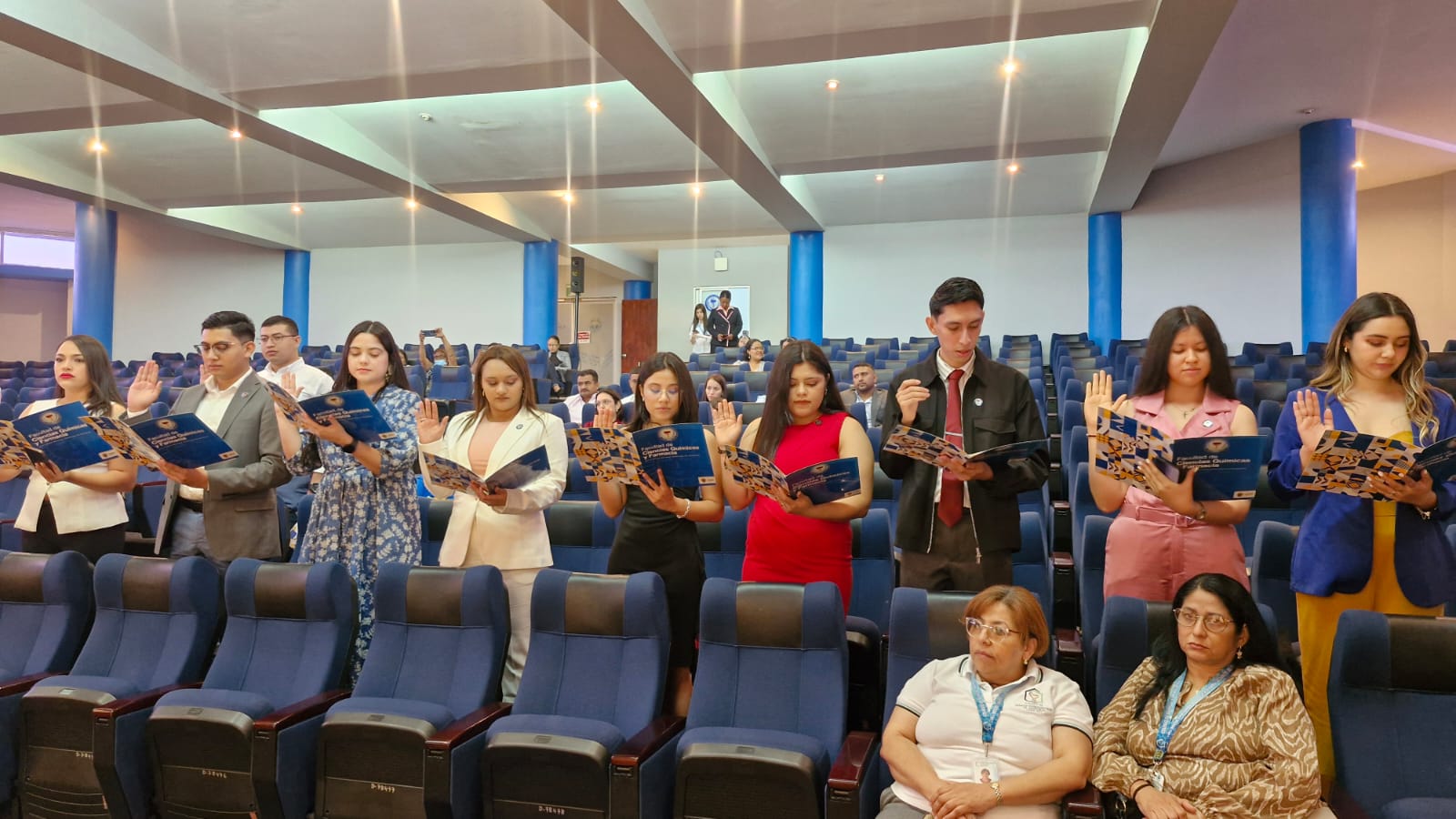 Con el respaldo del Colegio Químico Farmacéutico de Honduras y mediante un acto protocolario, estos graduandos fueron juramentados para respetar y cumplir el Código de este instituto para que una vez graduados, puedan ejercer su profesión.