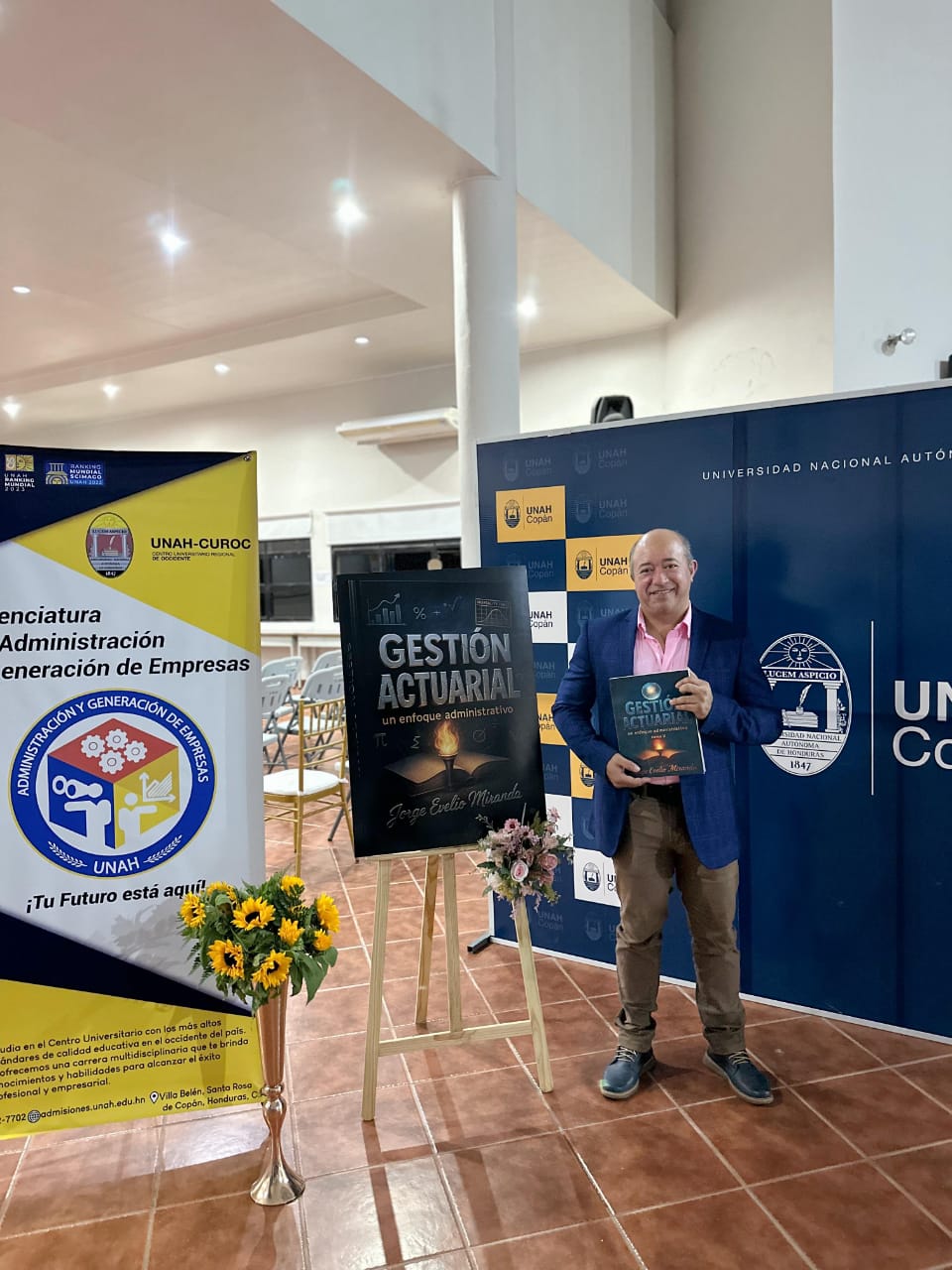El profesor Jorge Evelio Miranda, coordinador de la Carrera de Administración de Empresas Agropecuarias en la Universidad Nacional Autónoma de Honduras (UNAH), Campus Copán, presentó su obra titulada Gestión actuarial: un enfoque administrativo, un tratado integral dirigido a directivos interesados en anticipar, cuantificar y mitigar riesgos que puedan afectar la continuidad de sus organizaciones.