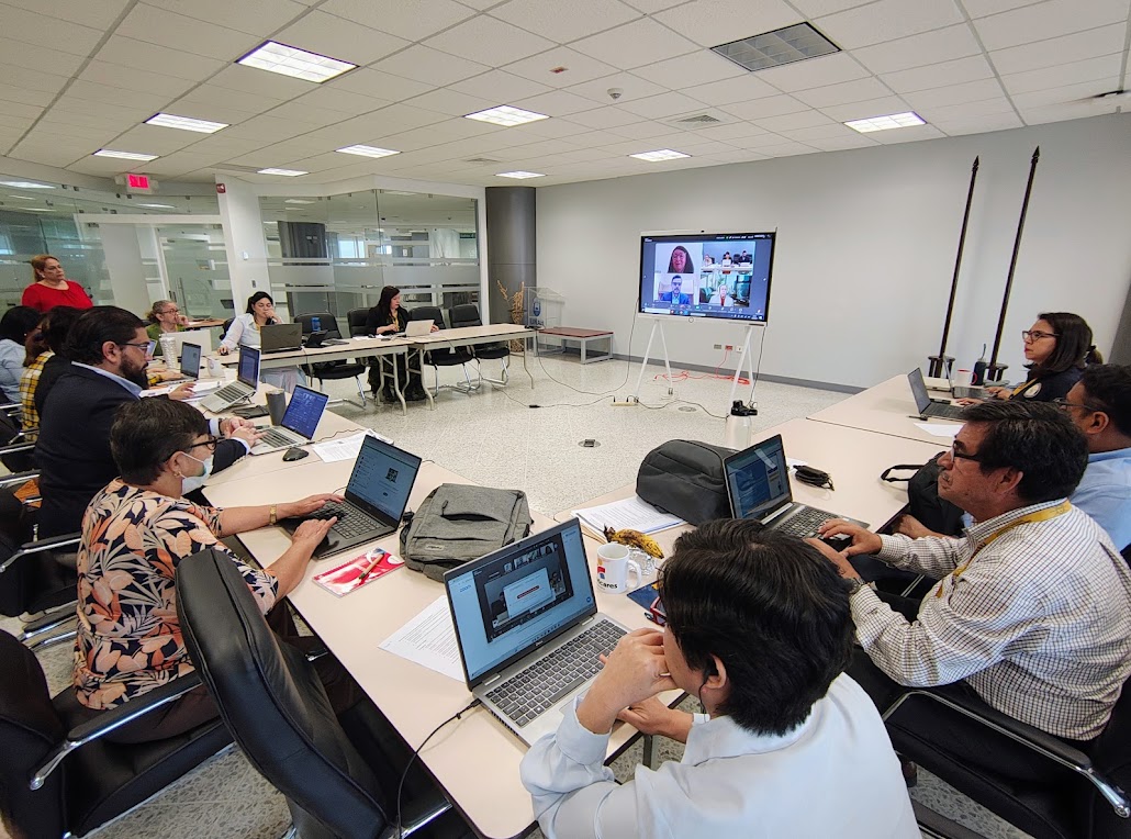 Con el fin de contribuir al análisis crítico, el intercambio de ideas y la mejora colaborativa de las iniciativas, la jornada de socialización contó con la participación de cinco evaluadores internacionales que brindaron a los equipos la respectiva retroalimentación, entre ellos Miguel Ángel Flores, docente e investigador de la Universidad Complutense de Madrid y mentor del programa de Diseño Pedagógico y EDS en el IESALC Unesco, y la doctora en Ciencias de la Educación con más de 25 años de experiencia en gestión universitaria como autoridad académica, Vanya Rocca Urioste.