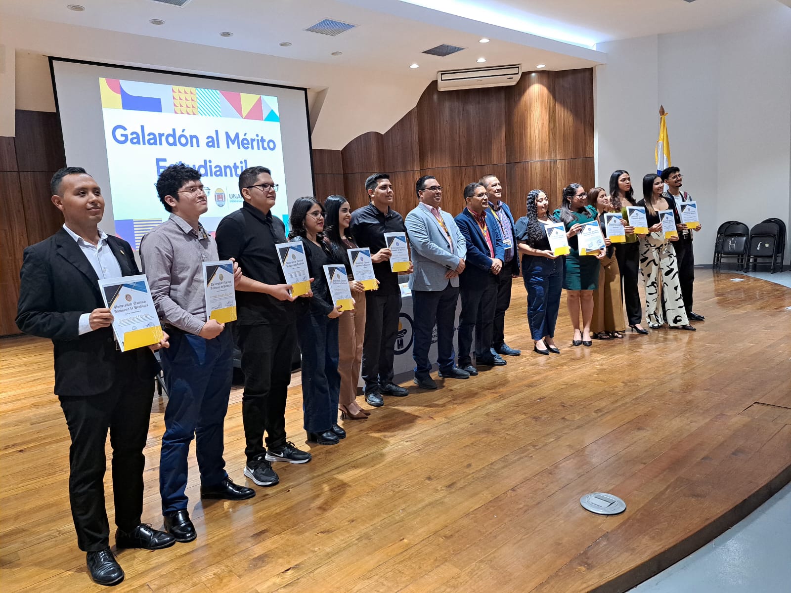 Doce estudiantes próximos a graduarse recibieron hoy el Reconocimiento de Honor al Mérito Académico por parte de la Universidad Nacional Autónoma de Honduras (UNAH), a través de la Vicerrectoría de Orientación y Asuntos Estudiantiles (VOAE). La institución reconoce de esta manera el esfuerzo, esmero, ímpetu y compromiso de los jóvenes, un evento realizado previo a la entrega de sus títulos universitarios.