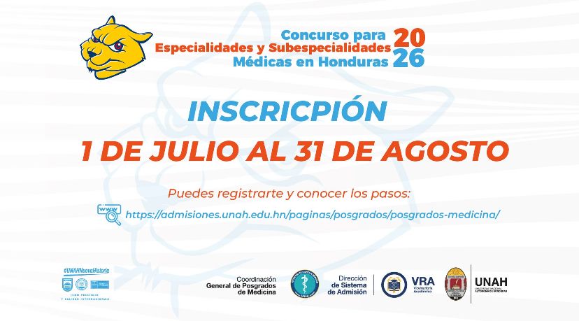 La Universidad Nacional Autónoma de Honduras, a través de la Facultad de Ciencias Médicas, coordinada por Admisiones UNAH, abrió oficialmente la convocatoria para el Concurso de Especialidades y Subespecialidades Médicas 2026, dirigido a los médicos titulados con un índice académico global igual o superior al 70%.