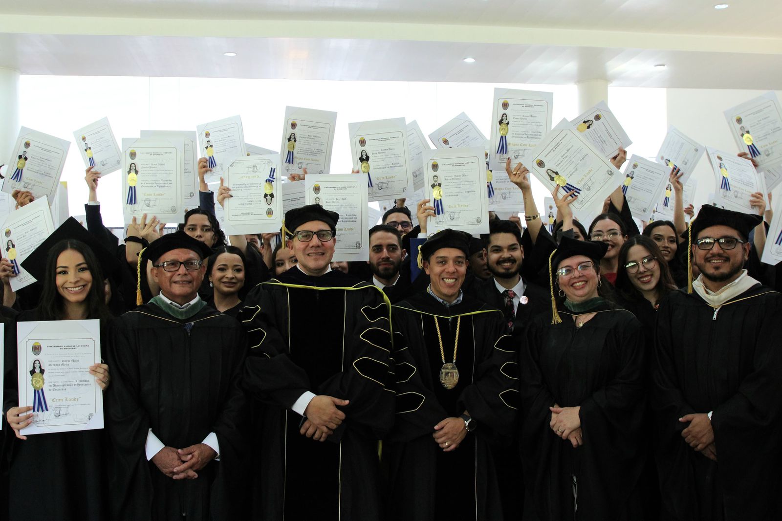 En su intervención y mensaje a los graduandos, el doctor Fernández los exhortó a agradecer y reconocer el apoyo de sus familias y seres queridos en el cumplimiento de tan importante meta académica. “Hoy obtienen un título que los acredita como profesionales, sin embargo, ese título no los convierte en más que las demás personas, son seres humanos con más conocimiento. Hoy más que nunca tienen que recordar a quienes les acompañaron en este viaje”, expresó el funcionario, a la vez que pidió a los graduandos dar un fuerte aplauso a sus familias, amigos y conocidos que estaban apoyándoles.