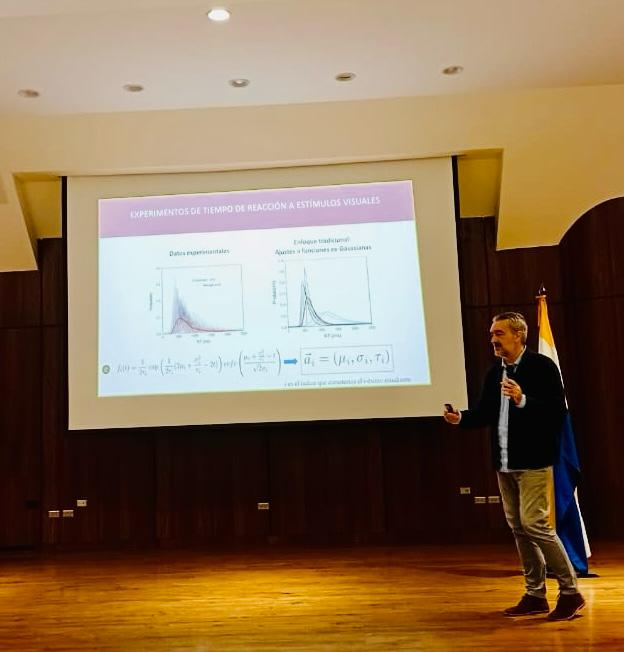 Por la tarde, el científico español impartió una segunda conferencia dirigida a estudiantes y docentes de distintas carreras. En ella explicó el desarrollo de modelos matemáticos inspirados en la física para analizar dinámicas colectivas, presentando una herramienta basada en la entropía para clasificar individuos según sus tiempos de reacción ante estímulos visuales. La ponencia despertó gran interés entre los asistentes, que consultaron sobre su aplicabilidad en disciplinas humanísticas y educativas.