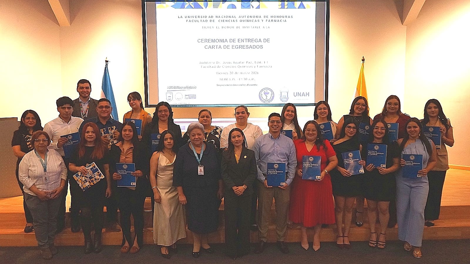 En total de 18 estudiantes de la Facultad de Ciencias Químicas y Farmacia de la Universidad Nacional Autónoma de Honduras (UNAH) recibieron su carta de egresado en una ceremonia académica que reunió a familiares, amigos, autoridades universitarias, docentes y personal administrativo, celebrando el cierre de una etapa fundamental en su formación profesional.