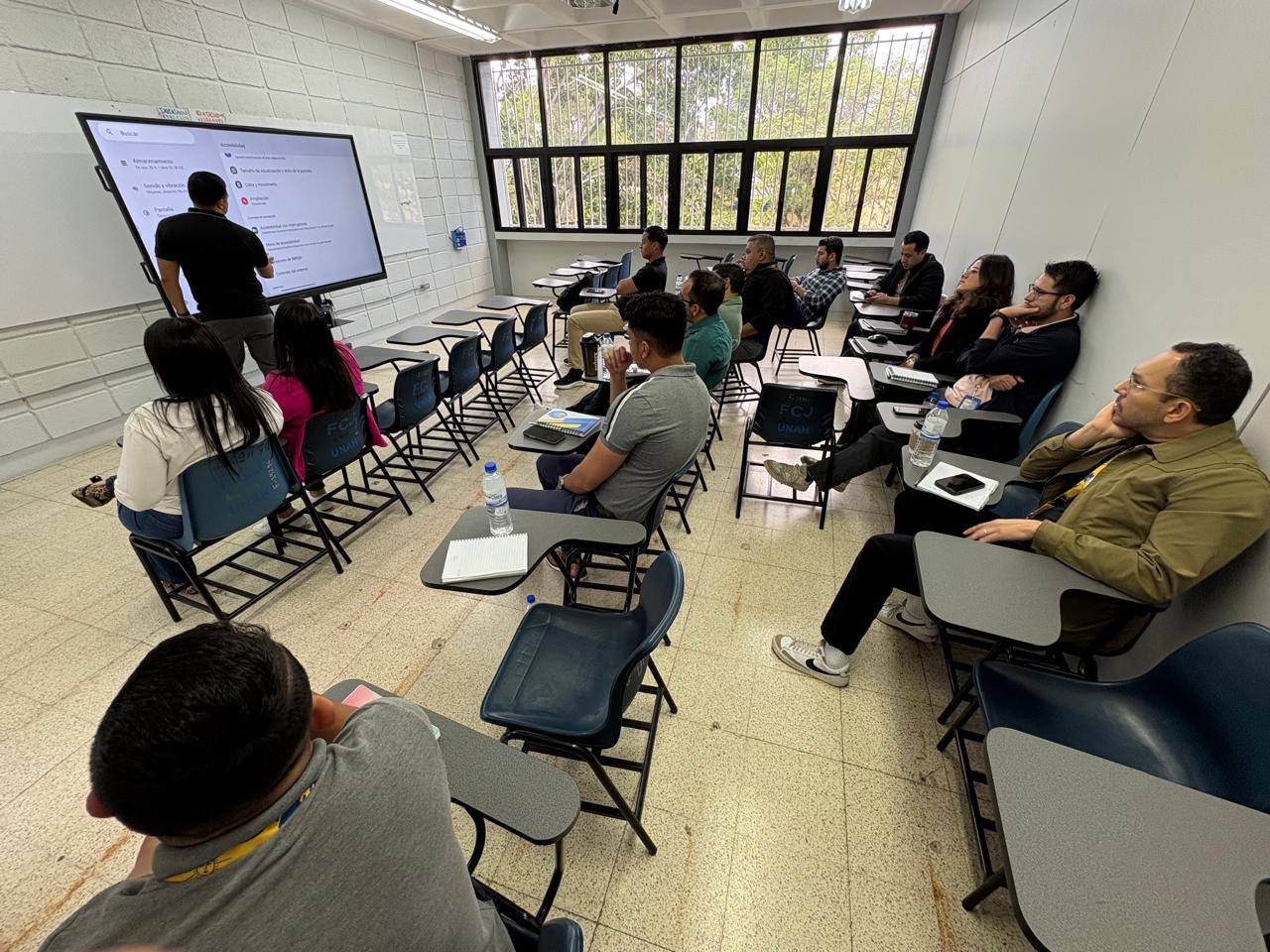 La Facultad de Ciencias Jurídicas (FCJ) de la Universidad Nacional Autónoma de Honduras (UNAH) inició el año 2026 con una importante mejora tecnológica y avances significativos en su proceso de transformación digital. Gracias al apoyo de la Secretaría Ejecutiva de Administración y Finanzas (SEAF) y la Secretaría Ejecutiva de Administración de Proyectos e Infraestructura (SEAPI), se ha culminado la instalación de pantallas inteligentes en todas las aulas del edificio A2, sede principal de la carrera de Derecho. Este equipamiento permitirá a los docentes impartir sus clases, tanto presenciales como virtuales, con mejores herramientas pedagógicas.
