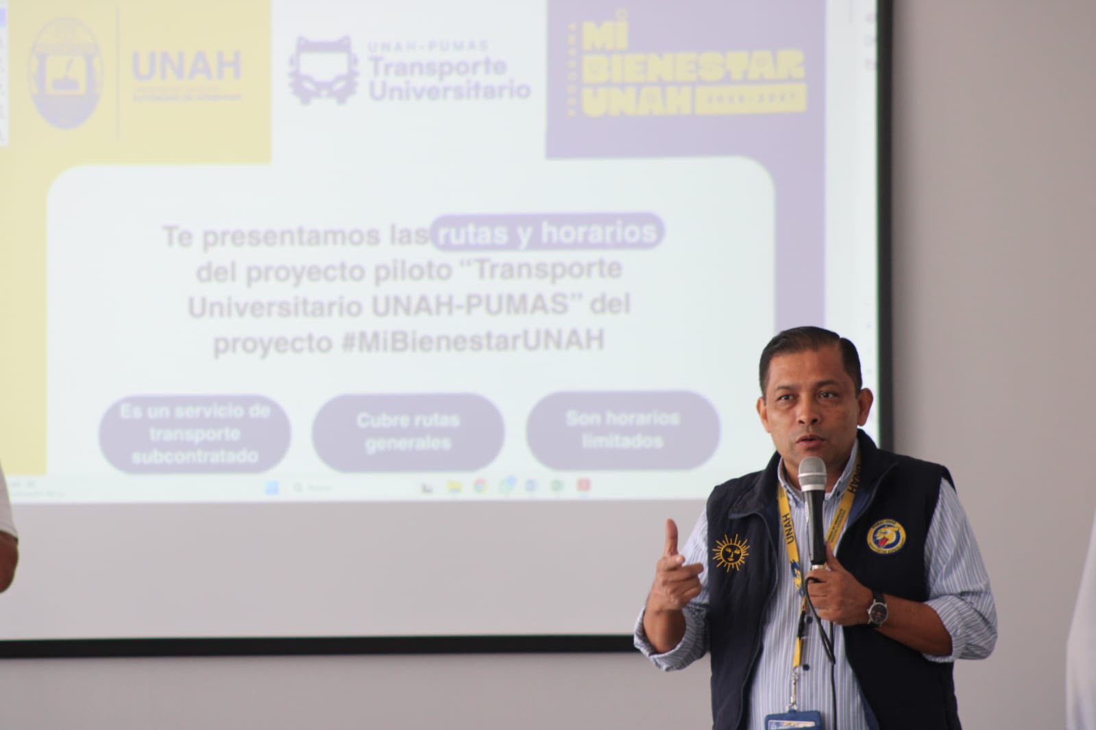 Como parte de los preparativos para el pilotaje del programa integral Mi Bienestar, el cual además brindará apoyo en alimentación, útiles y medicamentos a los estudiantes que más lo necesiten; autoridades de la institución junto a elementos de las Fuerzas Armadas de Honduras (FFAA), los cuales brindarán seguridad en las unidades, han realizado recorridos de prueba por las zonas con mayor concentración estudiantil, y se trabaja en la adecuación de la estación central, situada en el estacionamiento adoquinado del edificio J1 del campus.