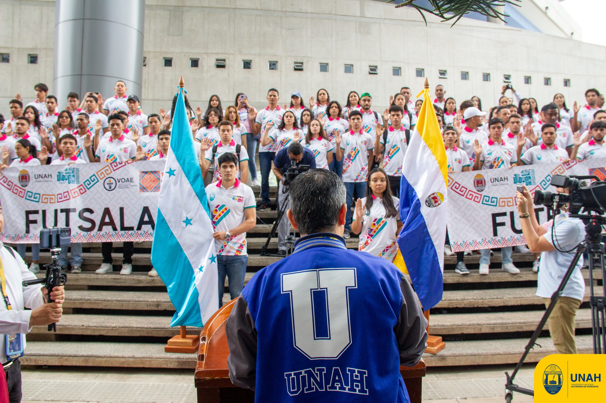 La Universidad Nacional Autónoma de Honduras (UNAH) juramentó de manera oficial a la delegación que estará participando en los Juegos Deportivos Universitarios Centroamericanos (Juduca) la próxima semana. Cientos de atletas fueron citados en los bajos del edificio Alma Máter para realizar el acto protocolario, liderado por el rector Odir Fernández. También acompañaron el referido acto los miembros de la Junta de Dirección Universitaria (JDU), así como decanos, secretarios y diferentes autoridades universitarias.
