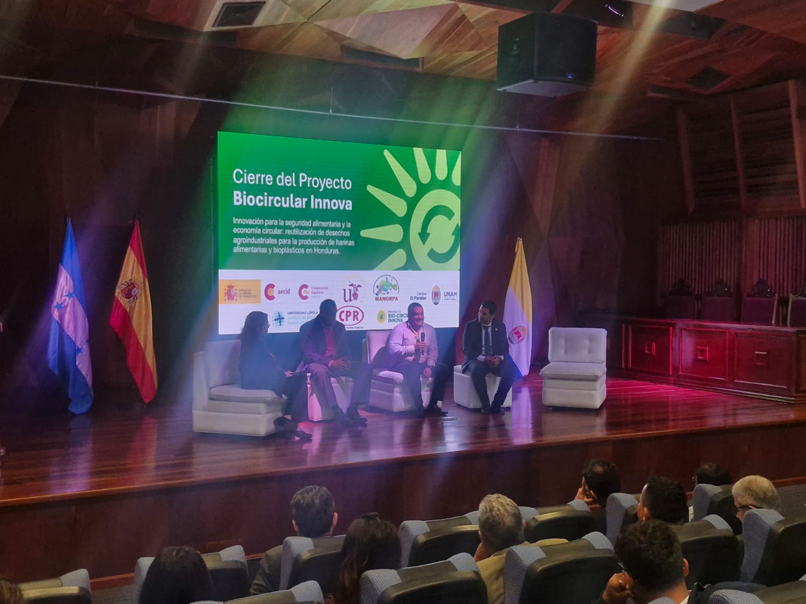 El proyecto "Biocircular Innova” llegó a su fin y este día se hizo el cierre en el auditorio Alma Máter de la Universidad Nacional Autónoma de Honduras (UNAH) con la participación de sus colaboradores como la Agencia Española de Cooperación Internacional para el Desarrollo (AECID), Ia Universidad de Sevilla, Fundación ETEA, la empresa Cauchos Pedro Romero S.L. y la Mancomunidad de Municipios del Norte de El Paraíso (MANORPA), junto a UNAH Campus El Paraíso.