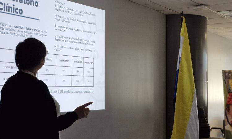 "El propósito de esta reunión es conocer los principales logros que se han obtenido para este 2024 haciendo una presentación por las personas que laboran en el área de la salud en donde han presentado las atenciones, medicas, odontológicas, de enfermería, fisioterapia, entre otras", expresó Mario Contreras, vicerrector de VOAE