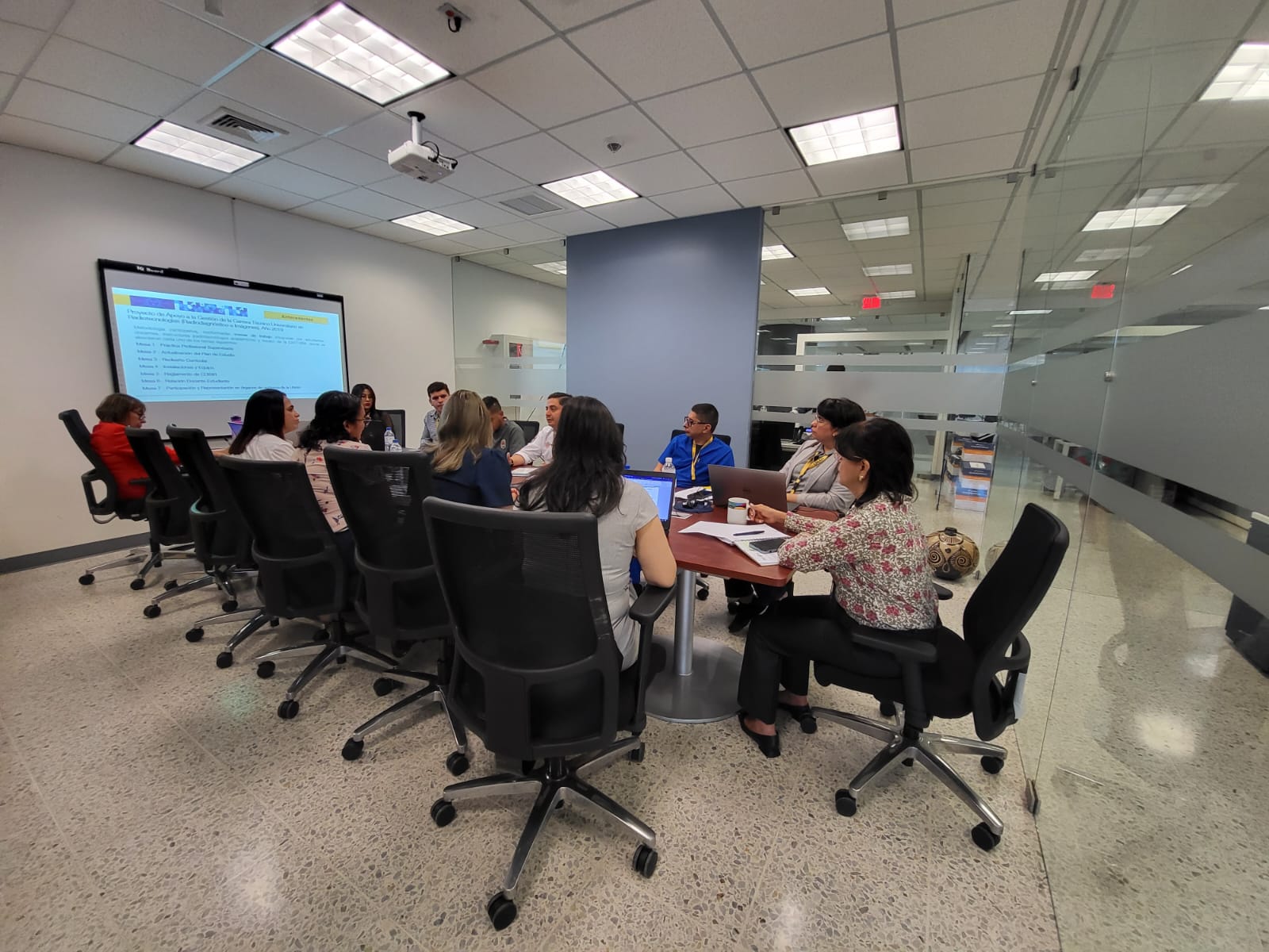 La Vicerrectoría Académica y la Dirección de Académica de Formación Tecnológica (DAFT) sostuvieron una reunión con personal de la Carrera del Técnico Universitario en Radiotecnología para conocer los resultados obtenidos a la fecha y sobre el proyecto de apoyo a la gestión de esta carrera.