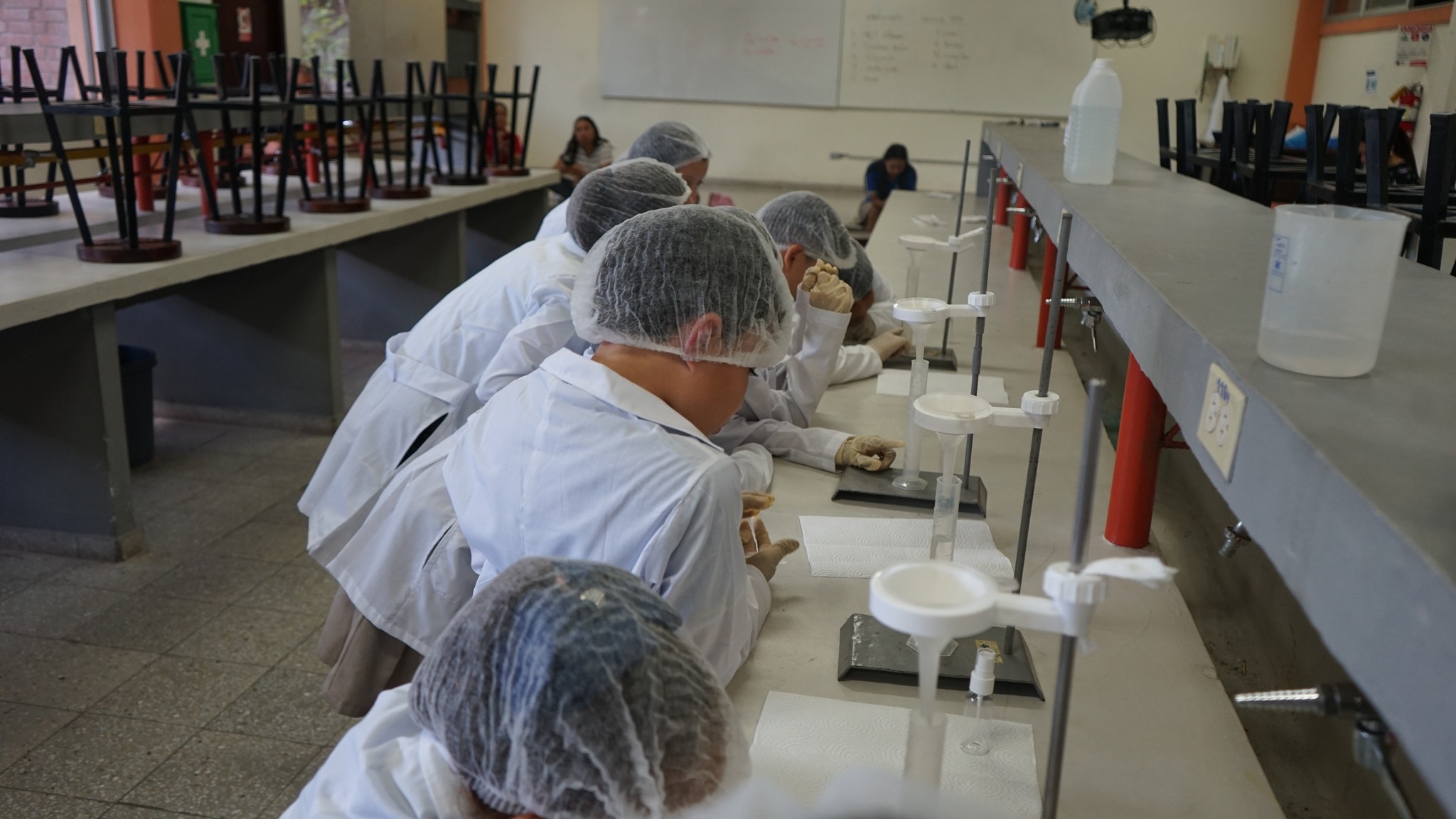 Alumnos de cuarto grado del Instituto Salesiano San Miguel visitaron nuestra Facultad para conocer la labor que se realiza dentro de un laboratorio de investigación.