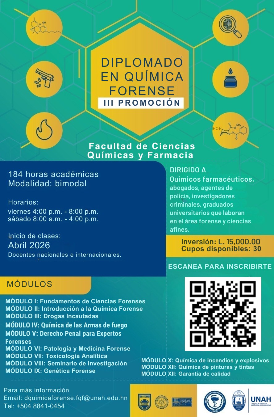 Aún estás a tiempo de inscribirte en la III Promoción del Diplomado en Química Forense de la Facultad de Ciencias Químicas y Farmacia -UNAH