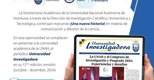 La Vicerrectoría Académica UNAH de la UNAH Universidad Nacional Autónoma de Honduras, a través de la UNAH Dirección de Investigación Científica, Humanística y Tecnológica, continúa escribiendo una nueva historia para la comunicación, la difusión y la divulgación de la ciencia en nuestro país e impulsada desde nuestra universidad.