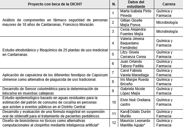 La Vicerrectoría Académica de la Universidad Nacional Autónoma de Honduras (UNAH) a través de la Dirección de Investigación Científica, Humanística y Tecnológica (VRA-DICIHT), ha destinado fondos orientados a fortalecer la función sustantiva de investigación con la participación de Estudiantes de Grado y Posgrado de la UNAH.