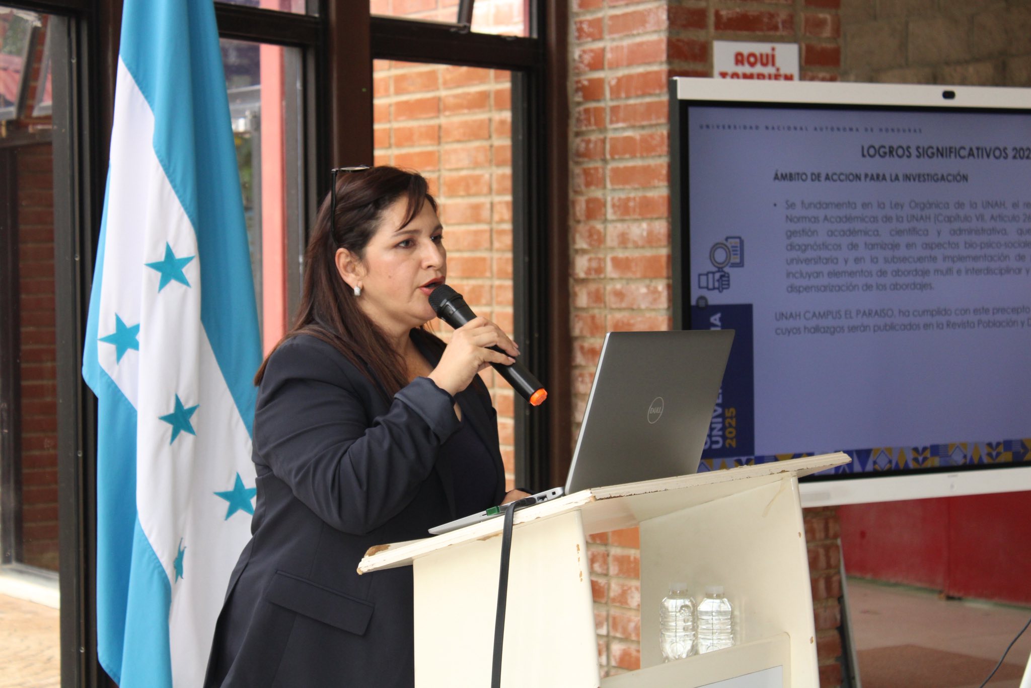 Las presentaciones fueron lideradas por el director de nuestro campus, la Coordinadora Regional de Admisiones, Máster Francis Mejía; la Coordinadora Regional de VOAE, Máster Sixmenia Raudales; el Coordinador Regional de Investigación, Dr. Andy Banegas; la Coordinadora Regional de Vinculación e Internacionalización, Dra. Isis Montes; el Jefe del Departamento de Agroindustria, Ing. Marlon Sánchez y el Secretario Académico del campus, Ing. Octavio Rivera. Quienes expusieron con evidencias los logros de sus áreas, desde publicaciones científicas en revistas indexadas hasta la socialización de carreras con centros educativos de todo el oriente del país.