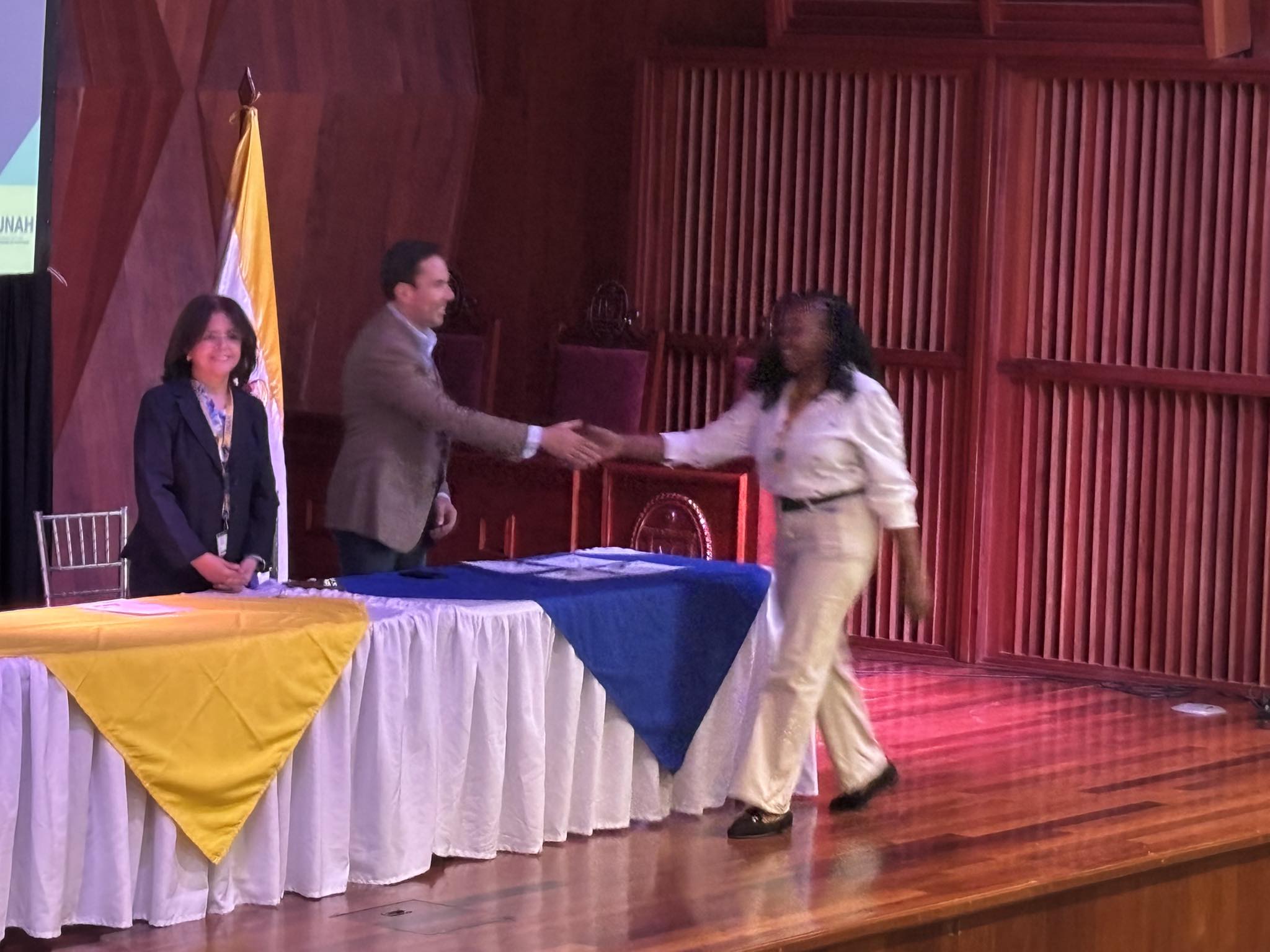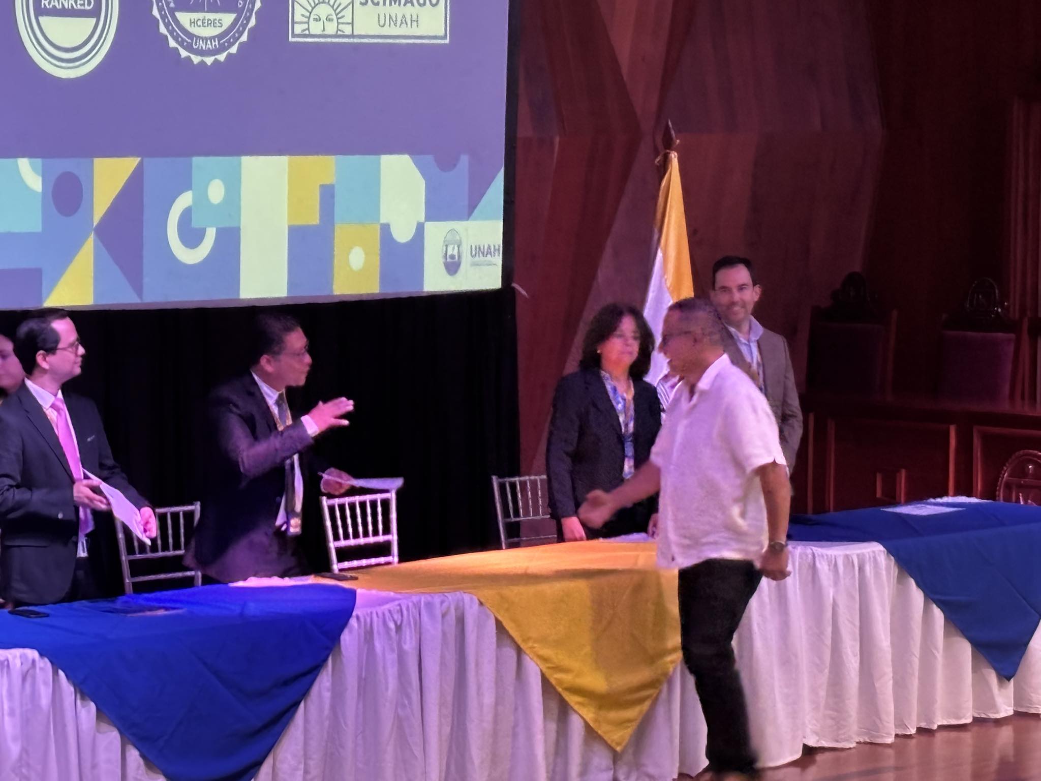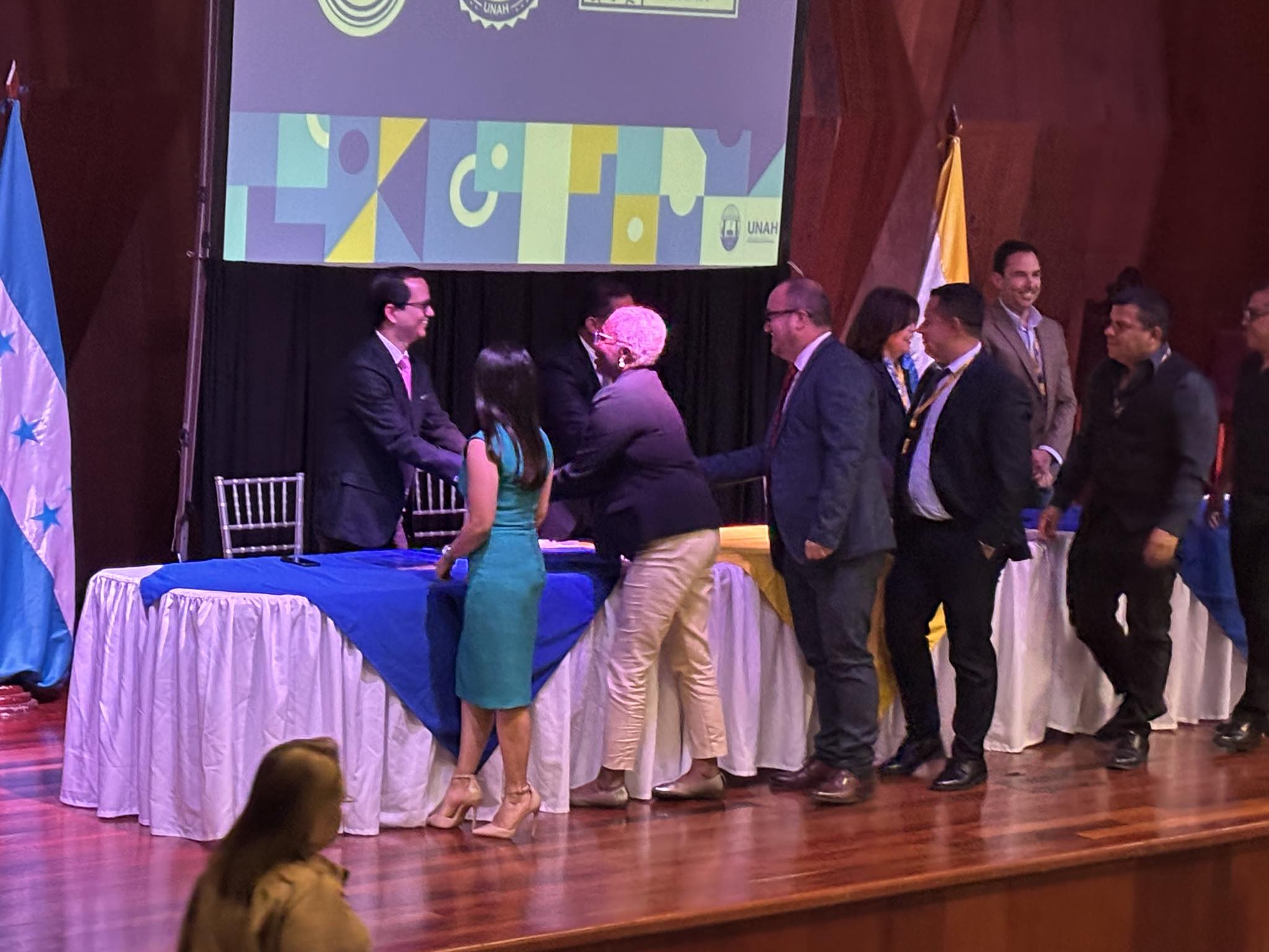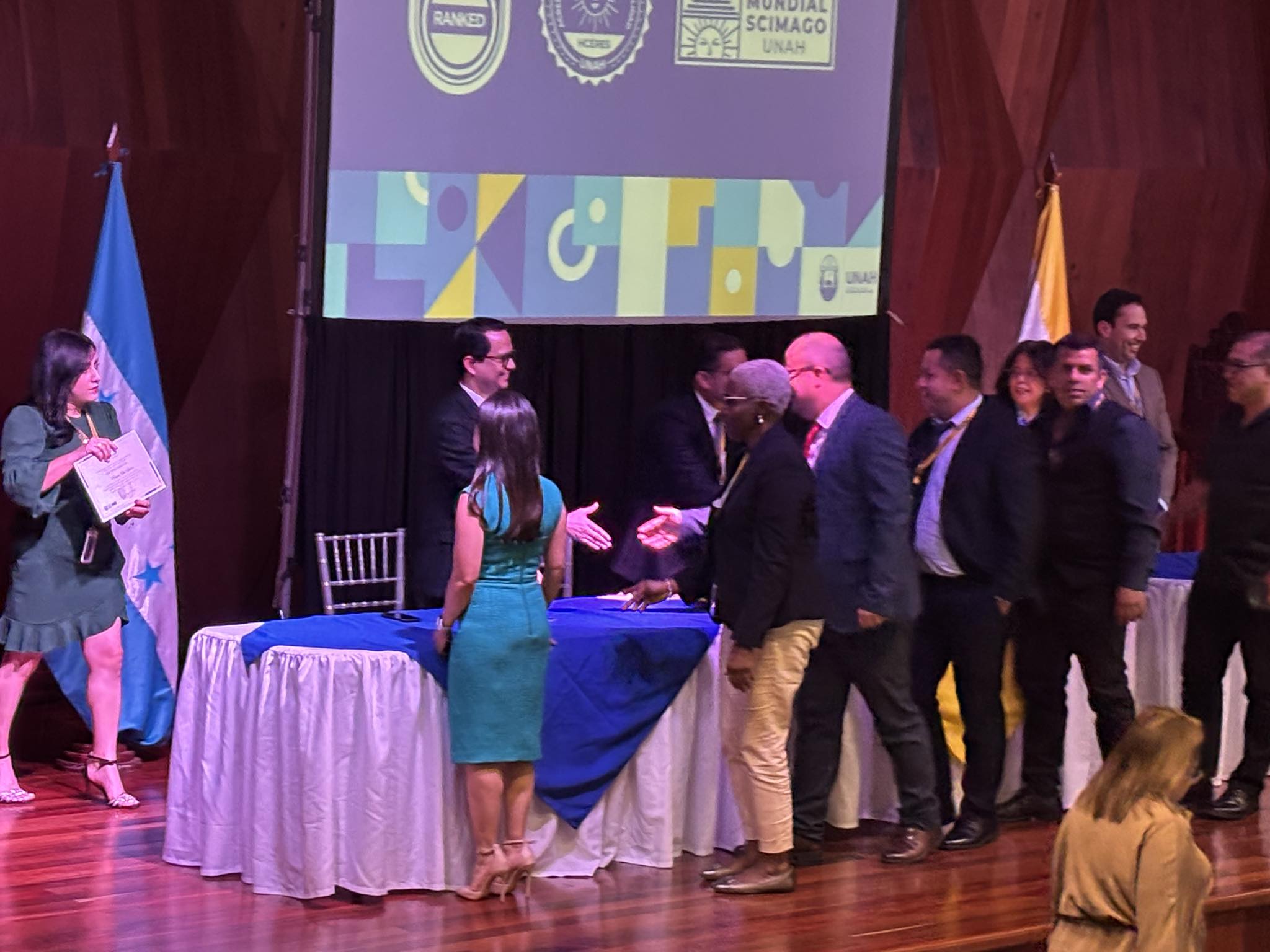 La Dirección de Vinculación Universidad-Sociedad (DVUS) de la Vicerrectoría Académica de la UNAH se hizo presente en la Ceremonia de Reconocimiento a los Investigadores Universitarios, un evento que resalta la labor de los académicos que contribuyen al avance del conocimiento y fortalecen el impacto de la universidad en la sociedad.