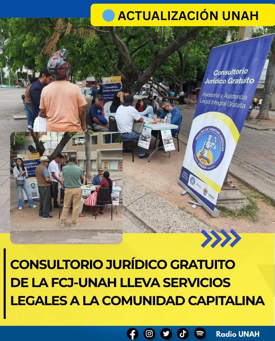 El pasado lunes, en el marco de su misión de servicio público, el Consultorio Jurídico llevó a cabo una Jornada Legal Integral en el centro de Tegucigalpa, con el objetivo de acercar la justicia a la población, promover una cultura de derechos y contribuir al fortalecimiento del Estado de derecho en el país.