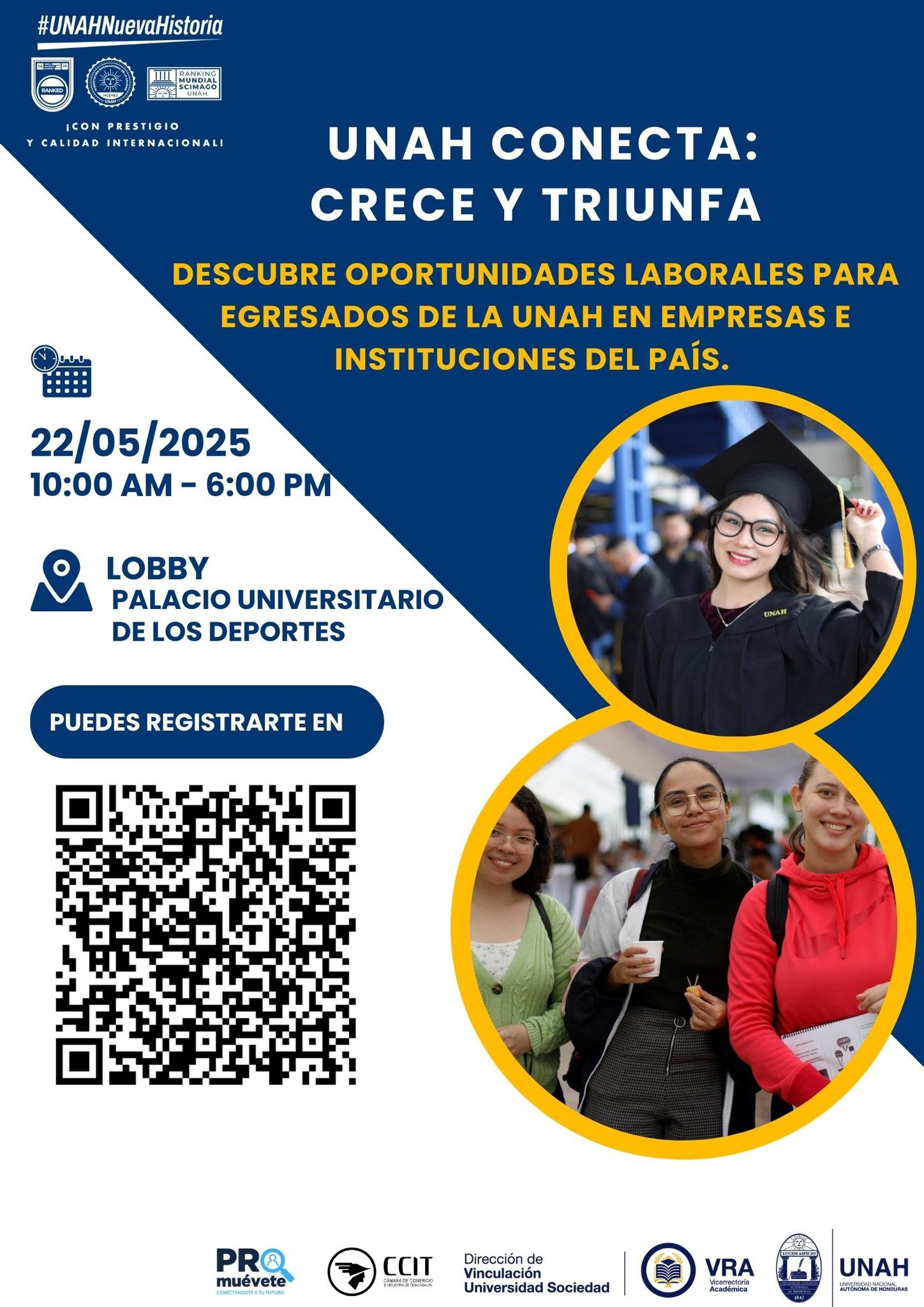 La Universidad Nacional Autónoma de Honduras (UNAH) te invita a ser parte de un evento único en un espacio diseñado especialmente para impulsar tu desarrollo y abrirte nuevas oportunidades laborales.