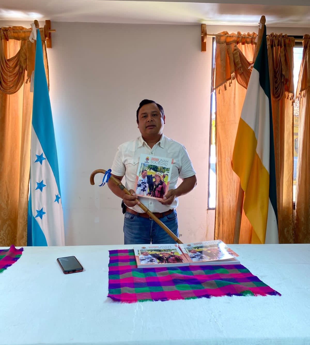 La Dirección de Vinculación Universidad-Sociedad (DVUS), adscrita a la Vicerrectoría Académica de la Universidad Nacional Autónoma de Honduras (UNAH), destacó la entrega de la revista UNAH Sociedad, volumen 6 (2024), al alcalde municipal de Yamaranguila, Intibucá, señor Romualdo Bejarano.