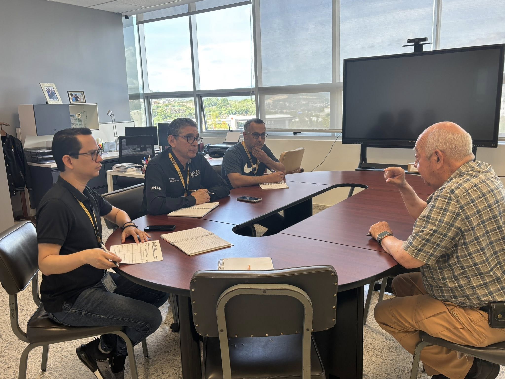 La Dirección de Vinculación Universidad-Sociedad (DVUS) recibió este día la visita del Ing. José Muñoz, representante de CIFORMAH y del Grupo Sansone, así como del Director de la Dirección de Investigación Científica, Humanística y Tecnológica (DICIHT) de la Universidad Nacional Autónoma de Honduras (UNAH), en el marco de un encuentro orientado a fortalecer lazos de colaboración interinstitucional.